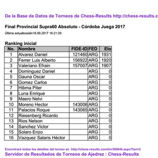 En el día de la fecha finalizó una nueva edición de la final provincial de ajedrez para la categoría Supra60 (Adultos Mayores).